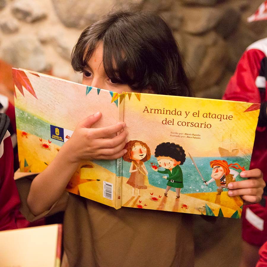 El libro ‘Arminda y el ataque del corsario’ escrito por Alexis Ravelo, ilustrado por Álex Falcón y editado por el Cabildo de Gran Canaria, es el tercer cuento de la colección ‘Las aventuras de Arminda’. Se trata de una historia trepidante para que los niños y las niñas conozcan el pasado de la pequeña aborigen que vivió en el poblado de Cueva Pintada a finales del siglo XV.