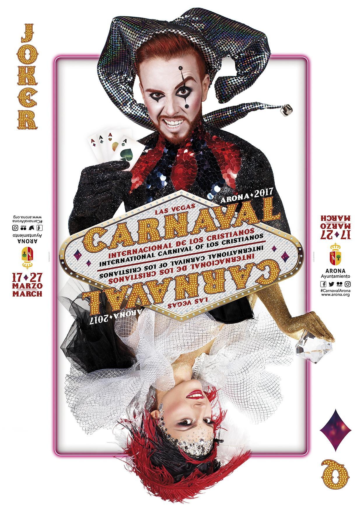 El Carnaval internacional de Los Cristianos 2017 tendrá como temática central Las Vegas, con toda la magia, la música, el lujo, la diversión y el juego, una visión que ha plasmado el diseñador Luis Marrero en un cartel que, además, juega con la eterna lucha del bien contra el mal tan presente en esas fechas próximas a la cuaresma. El carnaval del Sur, que el año pasado congregó a más de 25.000 personas solo en su coso apoteósico, se celebrará del 17 al 27 de marzo del año que viene y el programa se anunciará en fechas más próximas a la celebración.