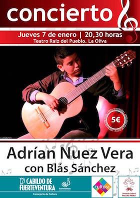 El Teatro Raíz del Pueblo de La Oliva acoge hoy, jueves, 7 de enero, el concierto del joven guitarristaAdrían Nuez …
