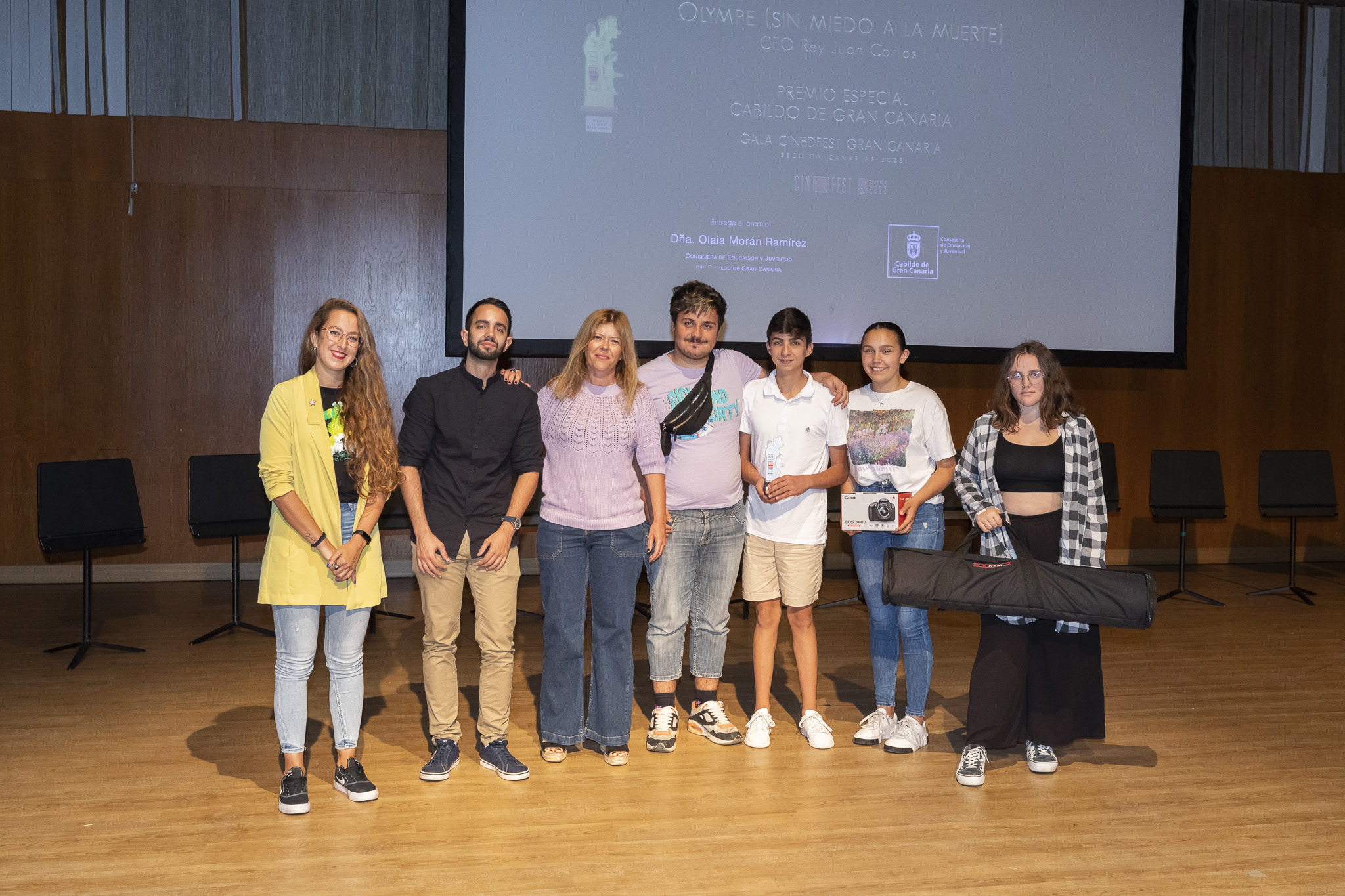 Olaia Morán, consejera de Educación y Juventud del Cabildo de Gran Canaria fue la responsable de dar a conocer que “Olympe” (sin miedo a la muerte”, del CEO Rey Juan Carlos I obtuvo el Premio Especial del Cabildo de Gran Canaria. “Nos hace mucha ilusión participar en Cinedfest porque es un proyecto transversal que más allá de acercar el mundo audiovisual al alumnado les enseña a ser autodidactas, ya que son ellos mismos los que escriben, ruedan y montan las películas y, además les enseña a trabajar en equipo”, fueron sus palabras al entregar el galardón. El docente Salvador Silva del centro ganador comentó: “El cine en la escuela es una fuente de posibilidades enorme”.
