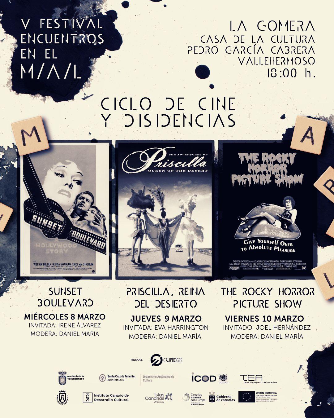 El cine ha sido una de las disciplinas artísticas que ha recogido las disidencias de diferentes sociales. La I edición del Ciclo de Cine y Disidencias nace, este 2023, con la proyección de tres clásicos de los años 50, 70 y 90: El Crepúsculo de los Dioses, Las aventuras de Priscilla, reina del desierto y The Rocky Horror Picture Show.