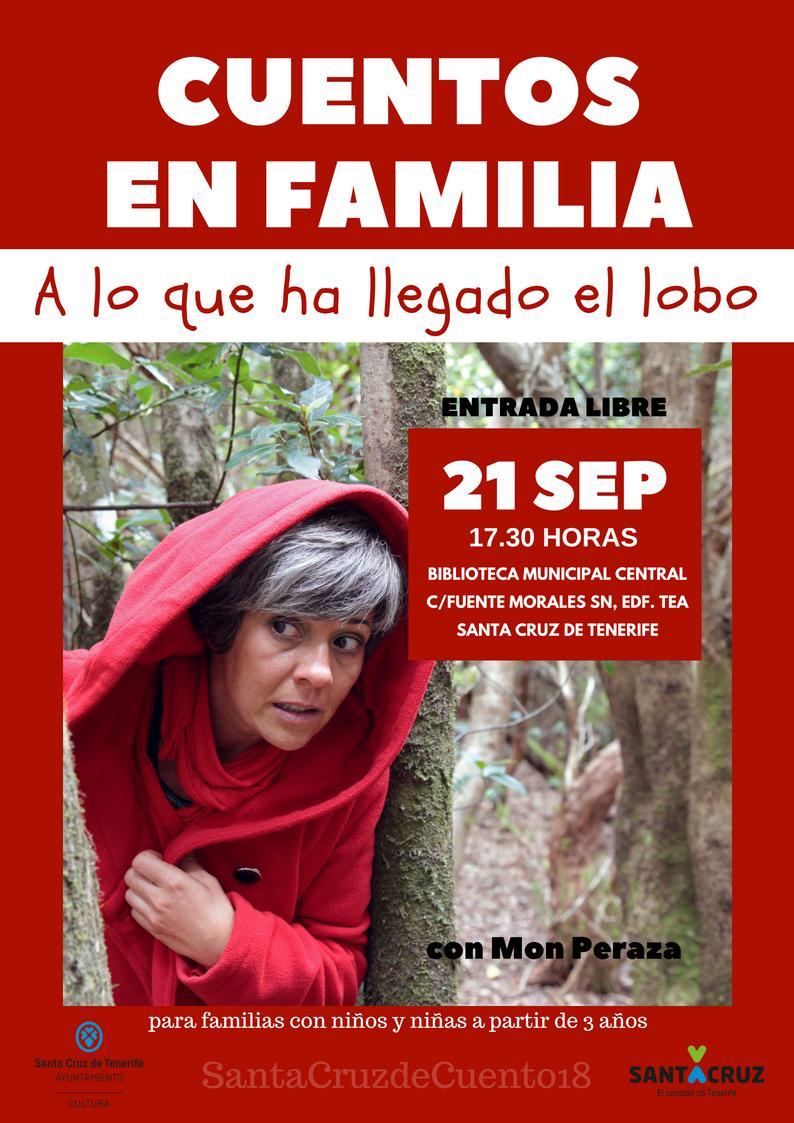 La Biblioteca Municipal Central acoge, a las 17:30 horas de este viernes, una nueva sesión de ‘Cuentos en familia’. En esta ocasión, la narradora oral Mon Peraza dedicará esta iniciativa al personaje del lobo feroz, aunque desde una perspectiva muy diferente a la habitual.