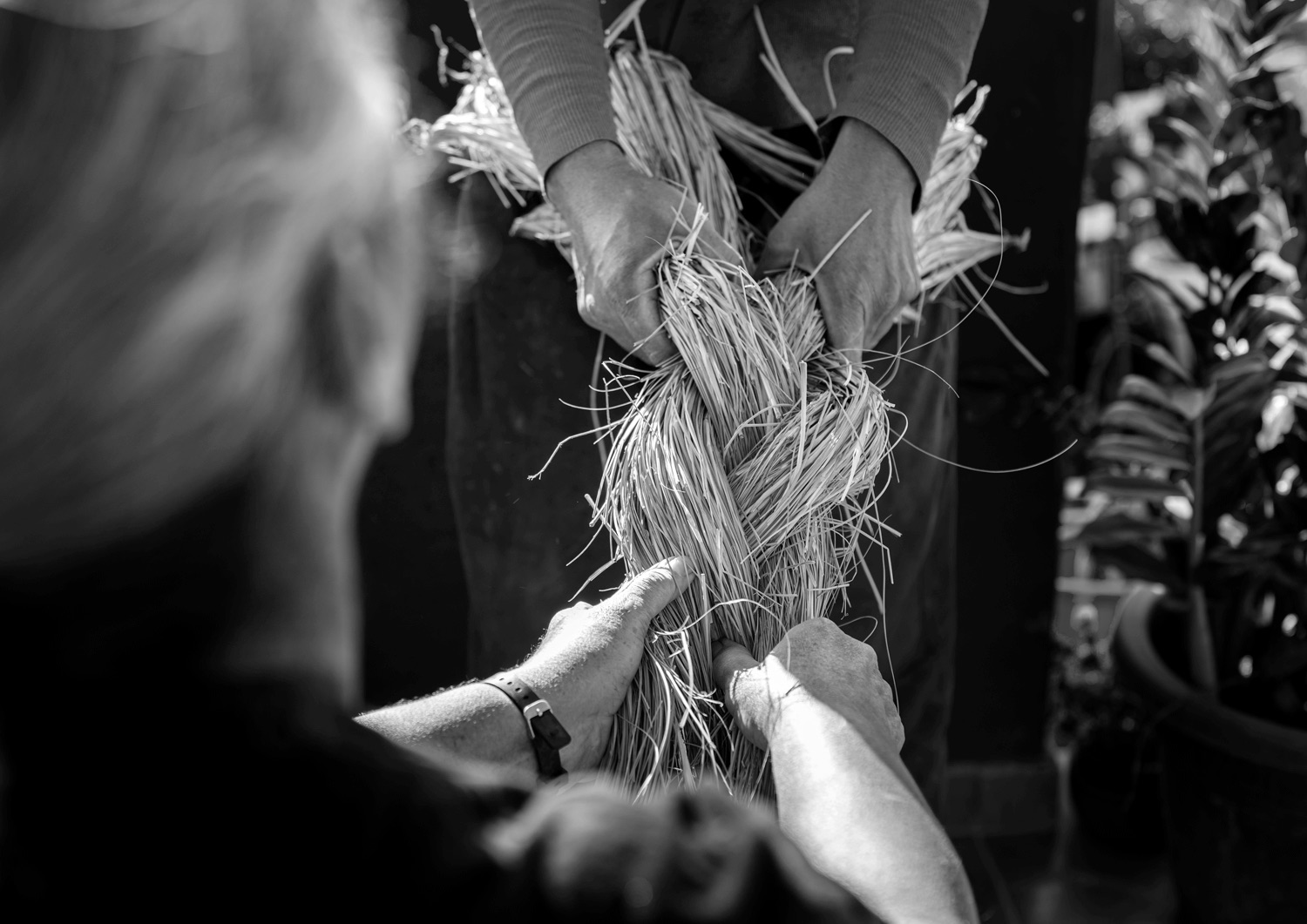 A partir del discurso poético, los materiales naturales se trabajan con las manos de la artista, que conoce la tierra como nadie, ya que la trabaja cada día como modo de ganarse la vida. No en vano, procede de una familia sureña de gran tradición agrícola. De los cultivos masivos, como el tomate, su familia ha ido explorando nuevos territorios, cada vez más respetuosos con el planeta. “En realidad, con la exposición estoy contando los orígenes de mi familia”, aclara Jiménez. “Los proyectos agrícolas han ido cambiando. Ahora somos horticultores, cultivamos de manera diversificada y practicamos la agricultura regenerativa, orgánica, en diálogo con la naturaleza”, trata de explicar la artista.