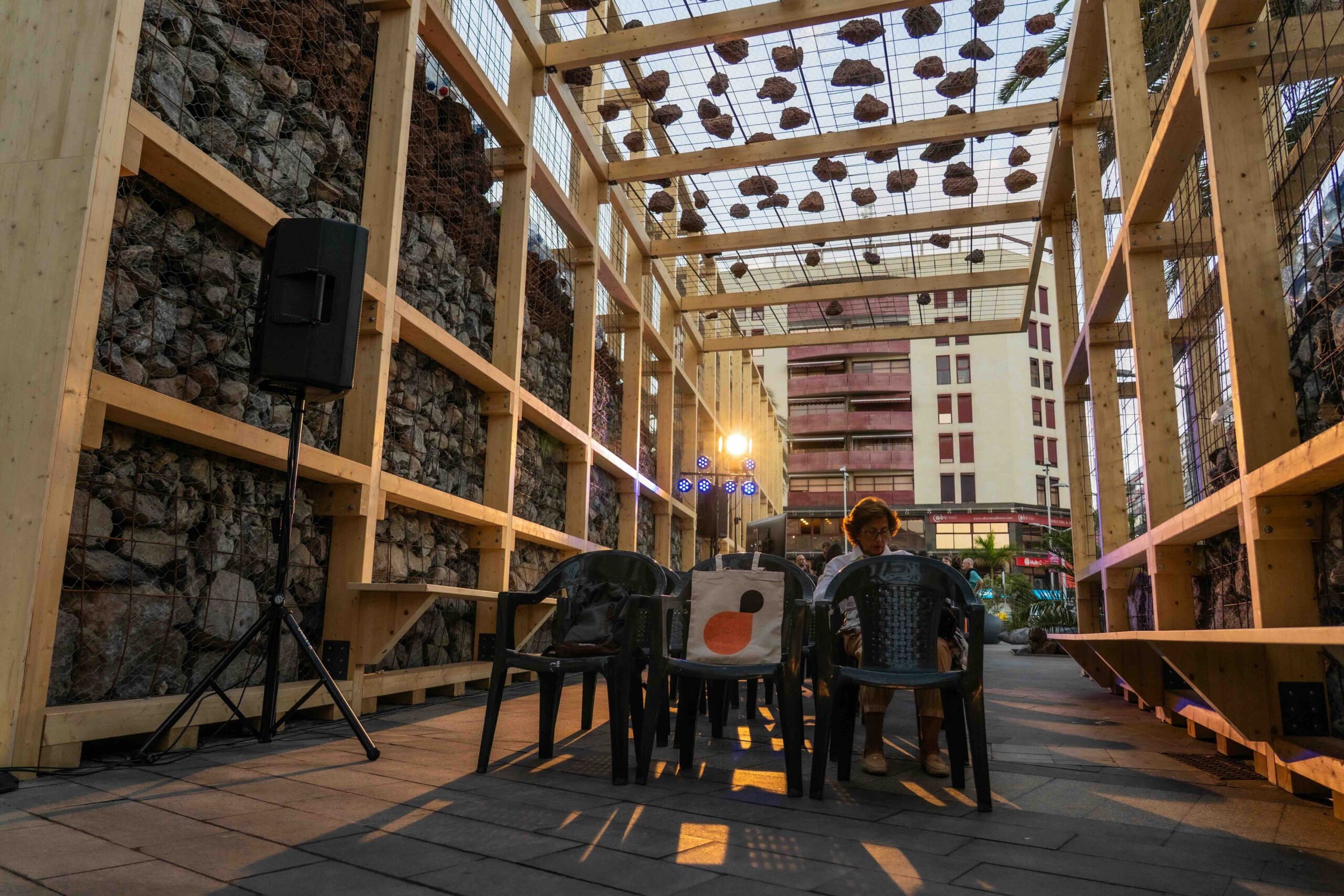 El pabellón temporal ‘De Roca Madre’, el proyecto ganador del Festival de Arquitectura Urbana TAC!, impulsado por el Ministerio de Vivienda y Agenda Urbana y el Ayuntamiento de Las Palmas de Gran Canaria, arranca su segunda semana de vida en la plaza de Stagno, junto al Teatro Pérez Galdós, en la capital grancanaria, con una variada propuesta de actividades participativas y gratuitas que enlazan la arquitectura con el paisaje, el cine, la música y la moda sostenible, entre otras disciplinas.