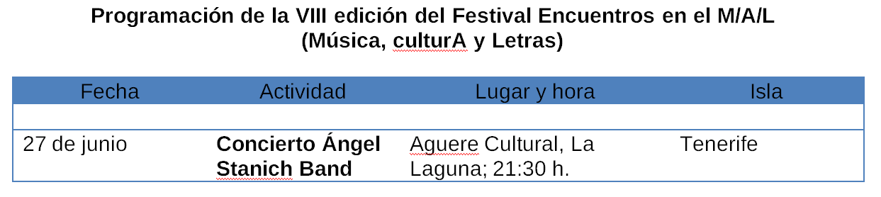 Continúa así la amplia programación del Festival Encuentros en el M/A/L (Música, culturA y Letras), que se desarrollará en Tenerife, Gran Canaria y La Gomera y donde creadores internacionales, nacionales y canarios ya han mostrado sus propuestas en el mes de marzo, y que continuará en abril y en junio.