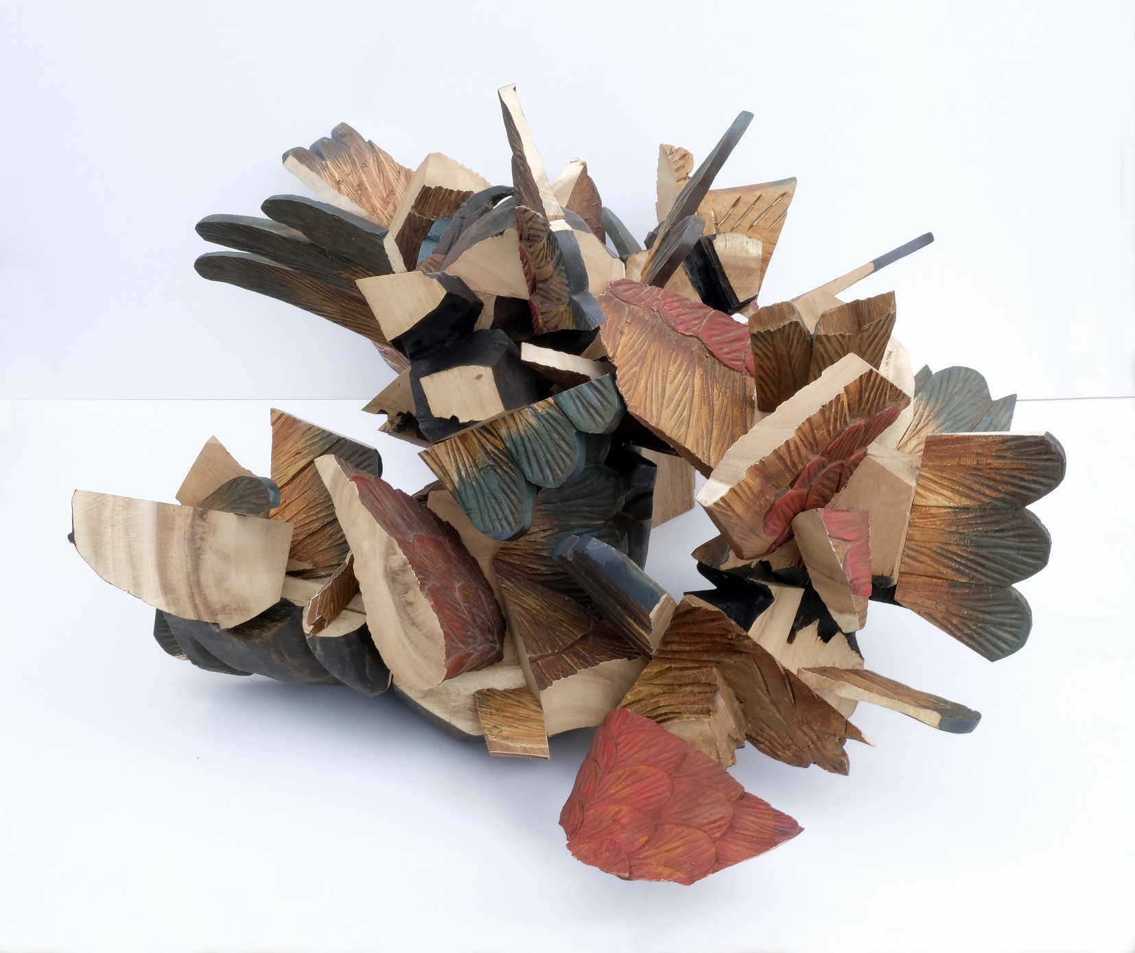 Batista elaboró las obras de madera con piezas de artesanía africana de madera recortadas y ensambladas de nuevo, una parodia del colonialismo y la explotación que sufre África, una situación en la que el continente vecino sigue sometido a una dinámica por la cual Occidente usa su materia prima para generar su propia riqueza. De la misma manera, el autor utiliza la artesanía como materia prima, la desmonta y genera piezas de alta cultura. Estas obras mantienen un vínculo con la serie de esculturas de madera deconstruidas Lucro y desmán, desarrollada por el artista entre 2019 y 2021. Asimismo, los bronces están también vinculados con las figuras de animales híbridos que forman parte de esta misma serie.