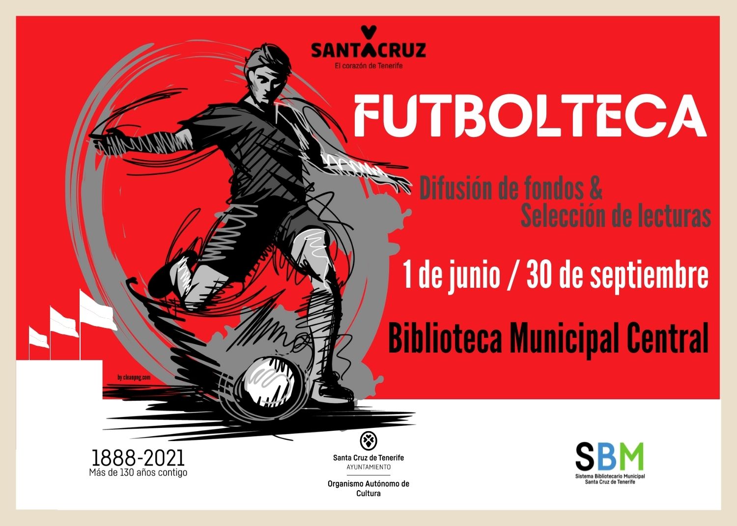 La tercera teniente de alcalde y concejal responsable del área municipal de Cultura, Gladis de León, informó que a partir de hoy martes se podrá visitar en la Biblioteca Municipal Central una muestra que incluye una selección de treinta y dos libros de ficción y no ficción relacionados con el fútbol.