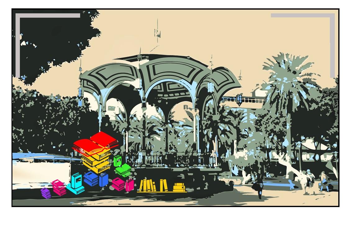 El espacio público de la Feria estará animado por la creatividad e improvisación de ocho actores, de los que cuatro forman el grupo Anartistas quienes, a pesar de su juventud, ya cuentan con un largo recorrido de actuaciones y varios premios por su excelencia interpretativa. La acción artística que llevarán a cabo, Viajar con un Libro, cuenta con ocho actores que interáctuan con el público, leyendo fragmentos de libros de autores canarios. Se romperá continuamente el espacio, y jugarán por todo el área de la feria (el parque), creando imágenes además de mucha poesía.