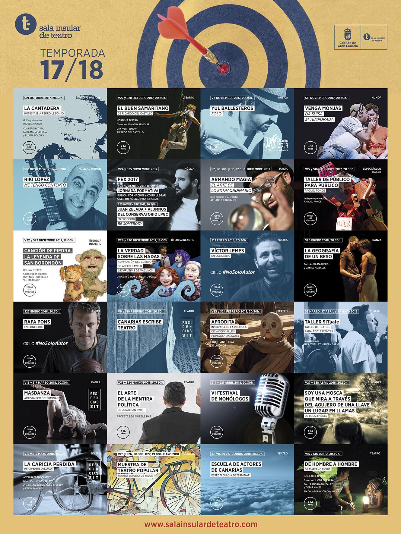 En noviembre y diciembre llegarán a la SIT clásicos de su programación como el Fex, que este año incluirá una jornada formativa y un concierto del músico Juan Zelada y alumnos del Conservatorio de Las Palmas de Gran Canaria; montajes de magia y títeres a cargo de Armando Rodríguez, Marifé Idoy y Bolina Títeres, así como el taller ‘De público para público’, impartido por Raquel Ponce. Todo ello tras un concierto de Riki López previsto el 18 de noviembre. El humorista cantarín, que saltó a la fama tras su colaboración con Gomaespuma en la emisora M80, vuelve a los escenarios más charlatán y espontáneo que nunca con nuevos e hilarantes temas llenos de autocrítica y costumbrismo.