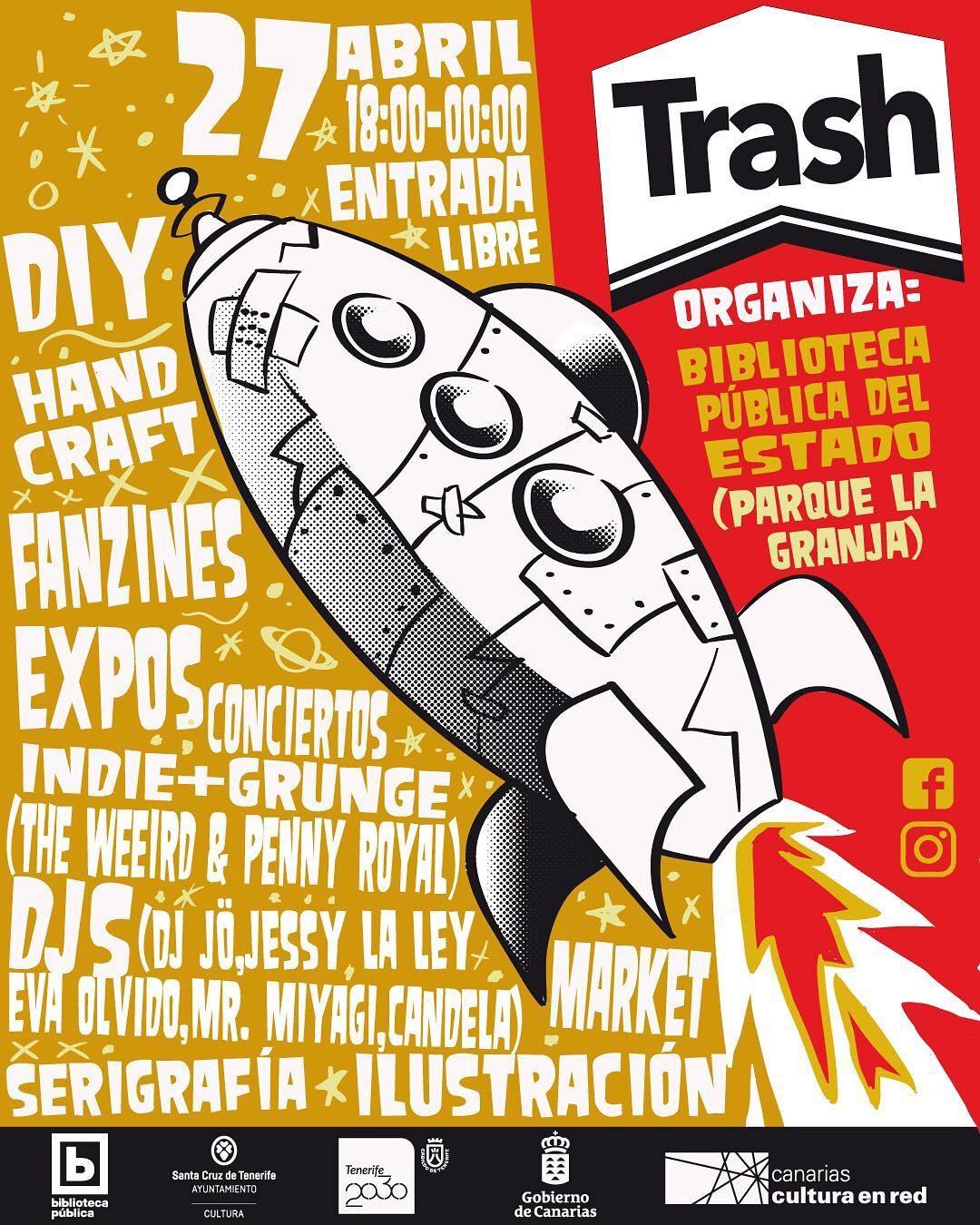El martes 23 de abril será el preludio del Trash Fest con su primera presentación pública, entre las 18:00 y las 22:00 horas. Se inaugurará la exposición Fanzine, con lo más relevante de la autoedición en Canarias, y se presentará el primer fanzine de la Biblioteca Pública, de carácter colaborativo. La sesión culminará con la música de Ferrero & Chaik y sesiones de DJ.