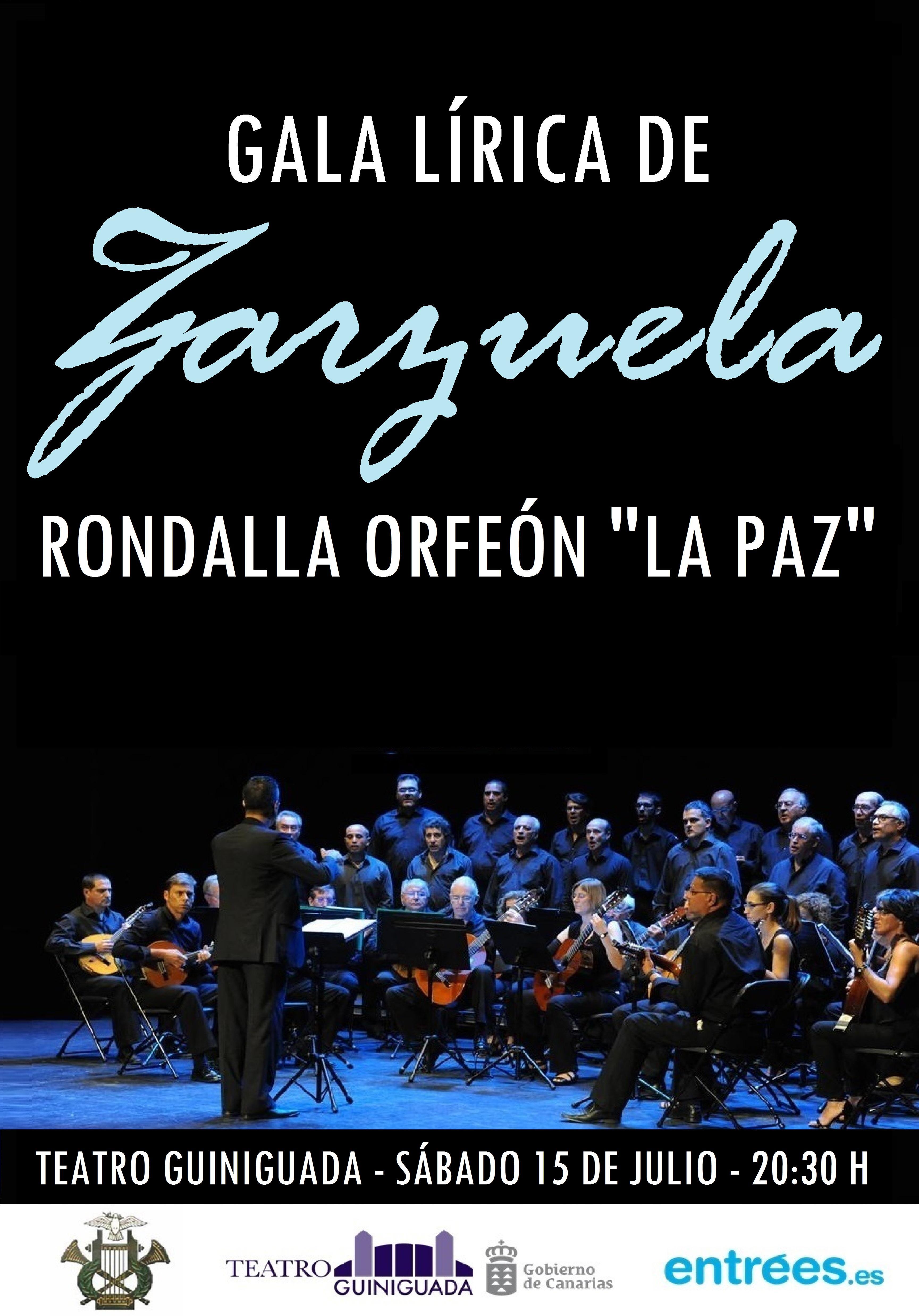 La tinerfeña Rondalla del Orfeón La Paz se trasladará hoy sábado, 15 de julio, al Teatro Guiniguada de Las Palmas de Gran Canaria para ofrecer una Gala Lírica, con un recorrido por algunas de las mejores Zarzuelas. La velada será a las 20.30 horas y contará con la participación excepcional de varios de los solistas que han formado parte de la historia de la agrupación de esta centenaria sociedad.