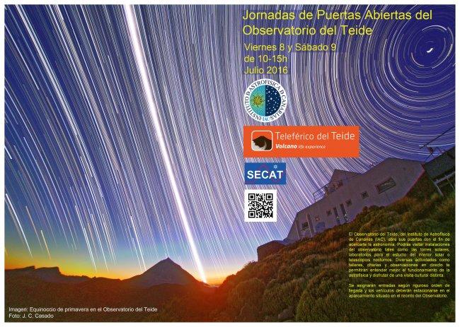 En el marco de sus actividades de divulgación y como en años anteriores, el Instituto de Astrofísica de Canarias (IAC) organiza el viernes 8 y sábado 9 sus anuales Jornadas de Puertas Abiertas en el Observatorio del Teide (Izaña, Tenerife), para acercar los conocimientos astronómicos tanto a la población de las Islas como a las personas que las visiten en esas fechas.
