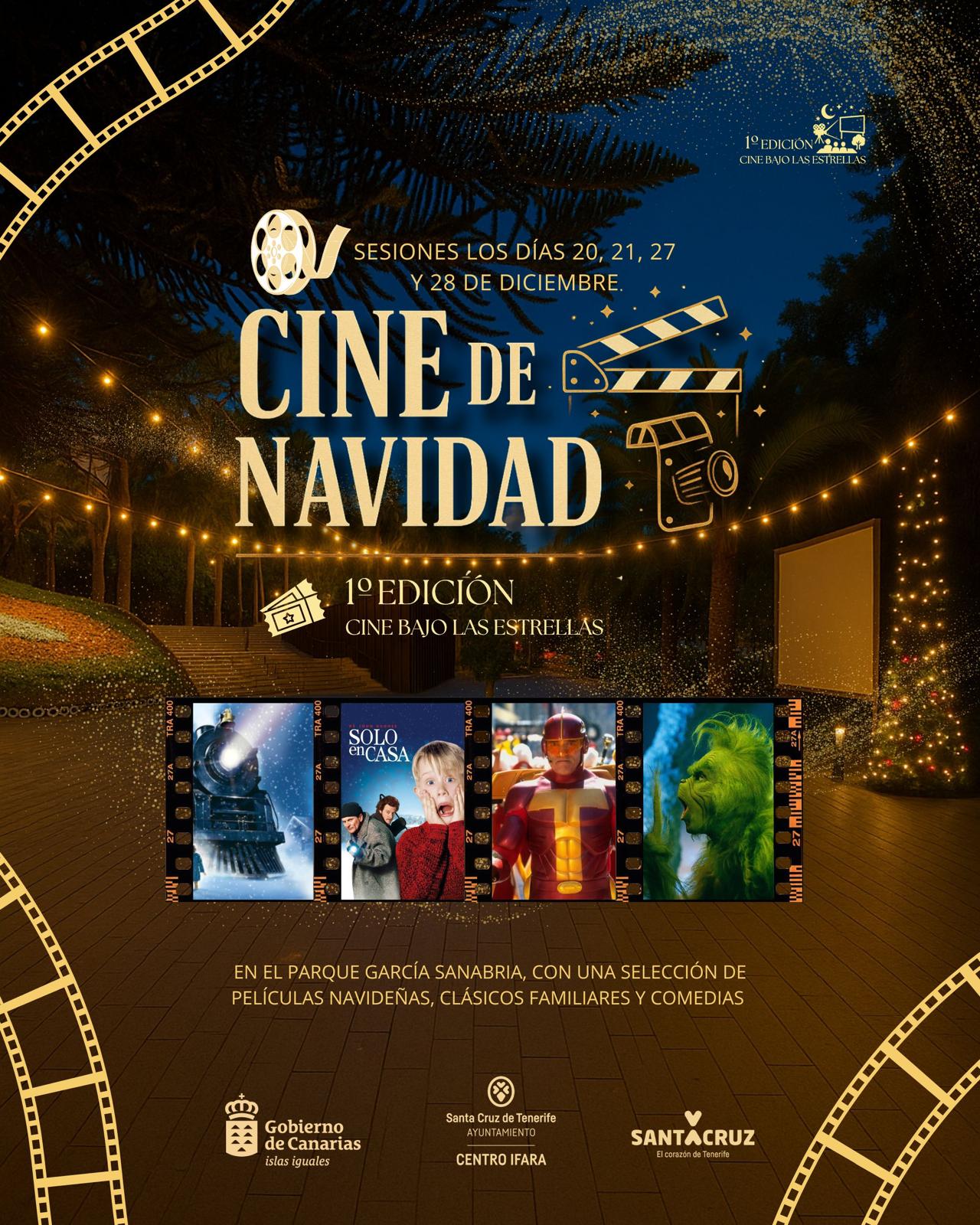 El cine y las artes escénicas tendrán un papel destacado los días 20, 21, 27 y 28 de diciembre, a las 20:00 horas, en el parque García Sanabria con el “Cine de Navidad”, una iniciativa del distrito Centro-Ifara que propone la proyección al aire libre de películas navideñas para todos los públicos, una alternativa de ocio cultural y familiar dentro de la programación de estas fechas, acercando la cultura a los barrios y espacios públicos del distrito. La programación incluye la proyección de “Solo en casa” el 20 de diciembre, “El Grinch” el 21 de diciembre, “Polar Express” el 27 de diciembre y “Un padre en apuros” el 28 de diciembre.